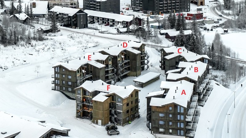 Övrigt: TV. Lägenheterna har gaskamin, balkong (skottas ej) & skidförråd. Hiss finns i huset. Carport & tillgång till elbilsladdare med typ 2-uttag mot avgift.