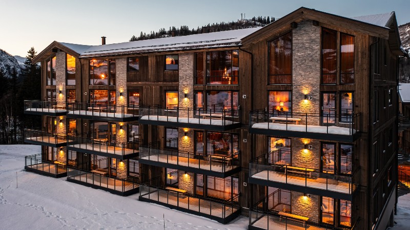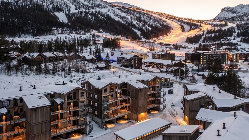 Fjellnest ligger i Hemsedal Skisenter. Lägenheter med 8 bäddar. Byggnadsår 2023.