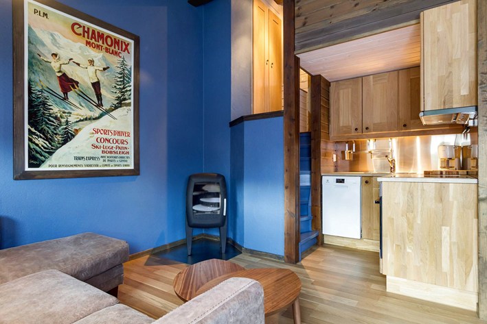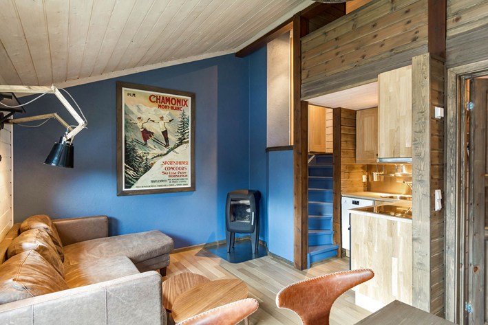 Lägenhet med modern inredning och högt i tak.