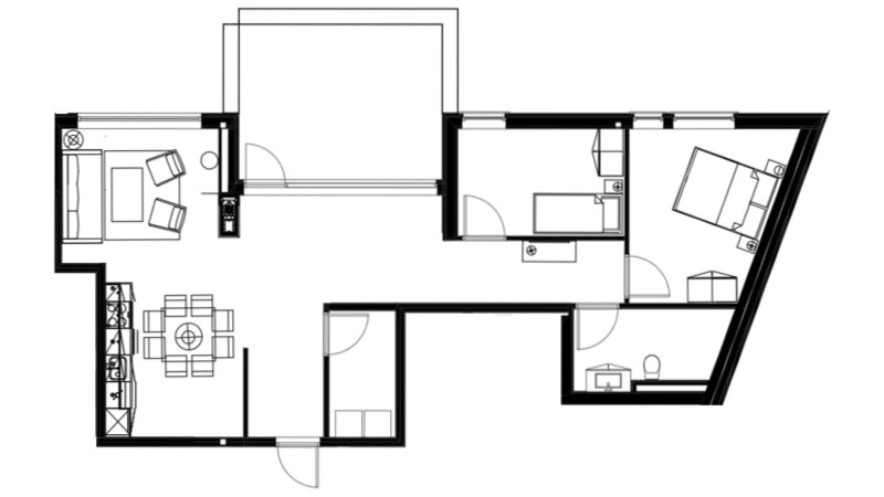 Skistar Lodge Hemsedal 4 bädd Topview lägenhet 5104. Som namnet antyder så ligger denna lägenhet på översta våning. Högt i tak med stora fönster som ger fantastisk utsikt mot backarna. Huskropparna är sammankopplade med en inglasad bro på våning 2. Vidare därigenom kommer ni också in till huset där ni finner reception, restaurang, skiduthyrning med mera.