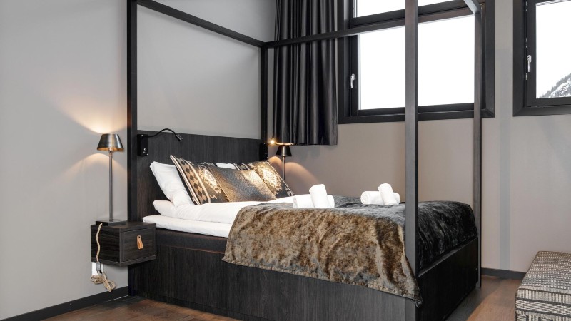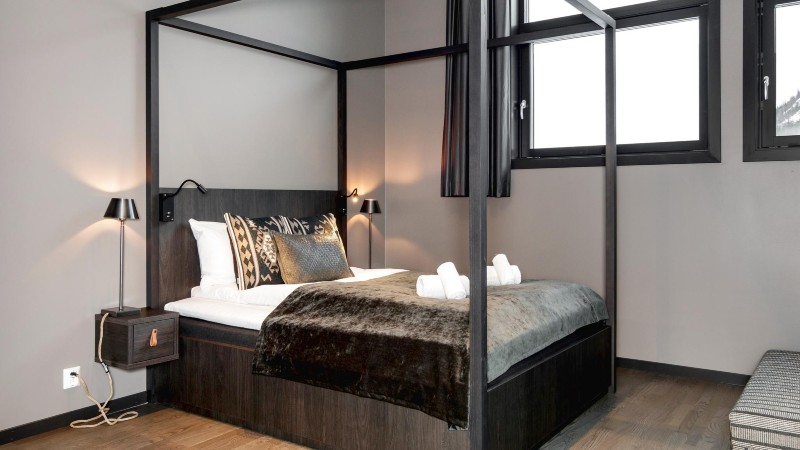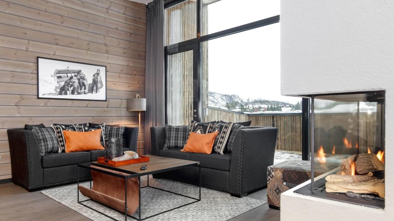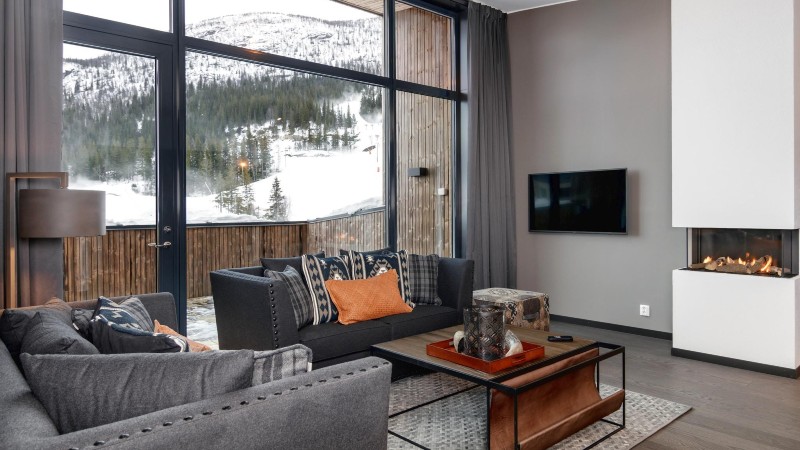 Skistar Lodge Hemsedal 8 bädd Topview lägenhet 5103. Lägenheten ligger på översta våning med mountainview & högt i tak med stora fönster som ger fantastisk utsikt mot backarna.