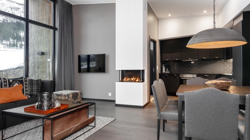 Övrigt: TV. Lägenheten har öppen gasspis. Set med lakan & handduk ingår (även uppbäddning). Skidskåp med skotork finns i huset. I lägenheten finns en garderob med element. Bokar ni denna enhet så ingår även toalettpapper, diskmaskinstabletter, handdiskmedel, disktrasa & torkhandduk.
